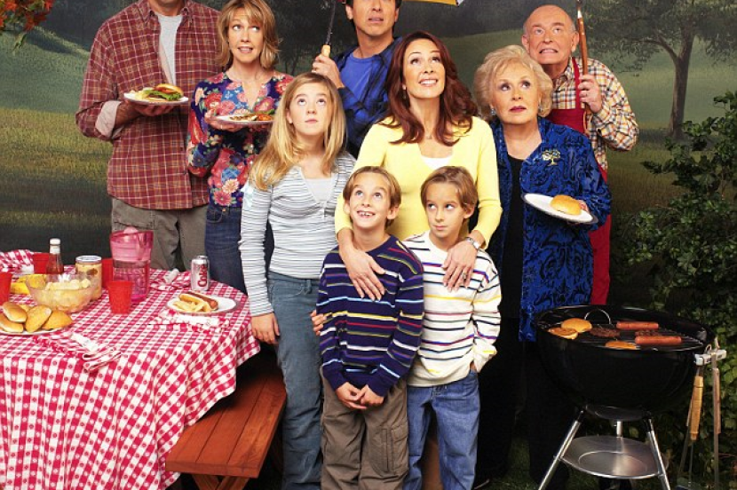 Barisan pelakon siri tv komedi popular, Everybody Loves Raymond. Mendiang Sawyer Sweeten di hadapan sekali (kiri) bersama saudara kembarnya Sullivan.