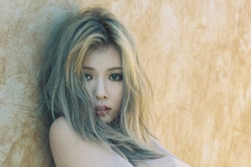 HyunA kelihatan menutup payudaranya dengan menggunakan tangan sahaja.