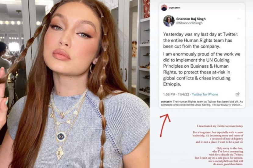 SELEPAS Amber Heard memadam akaun Twitter miliknya, kali ini model sensasi Gigi Hadid juga membuat keputusan untuk menghapuskan akaunnya di aplikasi popular tersebut. Gigi menyatakan bahawa dia tidak mahu terkait lagi dengan sebarang masalah yang ada di aplikasi itu. "Hari ini saya sudah nyahaktifkan akaun Twitter. Peminat mencari akaun Twitter Gigi Hadid namun gagal "Sejak ditukar pemilik Twitter, platform ini telah menjadi tempat kebencian dan ketaksuban," tulisnya. Berita ini hangat diperkatakan oleh warga media sosial apabila Gigi dilihat memuat naik paparan skrin di Instastory miliknya. ARTIKEL BERKAITAN: Elon Musk beli Twitter, akaun Amber Heard lesap! ARTIKEL BERKAITAN: Bella Hadid halang percintaan Gigi Hadid dan Leonardo DiCaprio Bagaimanapun Gigi turut meminta maaf kepada pengikutnya di Twitter dan memberitahu bahawa dia gembira sepanjang bergelar pengguna. "Saya menggunakan Twitter ini sudah sepuluh tahun tetapi saya merasakan platform ini bukan lagi tempat yang selamat untuk digunakan. "Twitter bukan aplikasi yang akan memberi kebaikan kepada saya lagi," tulisnya pada hantaran tersebut. Tindakan Gigi yang memuat naik hantaran di Instastory telah menarik perhatian peminat Dalam pada itu, Gigi turut memuat naik paparan skrin menunjukkan kenyataan yang dibuat oleh Shannon Raj Singh iaitu bekas penasihat hak asasi manusia di Twitter. Sejak mengambil alih Twitter, Musk dikatakan telah memecat separuh dari bilangan pekerjanya melalui emel dengan tujuan untuk mempercepatkan lagi gerak kerja pekerja yang sedia ada. Selain Amber dan Gigi, penyanyi Toni Braxton juga terkejut dengan beberapa posting bersifat kebencian yang tersebar dan memilih untuk mengundur diri daripada platform tersebut. Dapatkan info dengan mudah dan pantas! Join grup Telegram mStar DI SINI