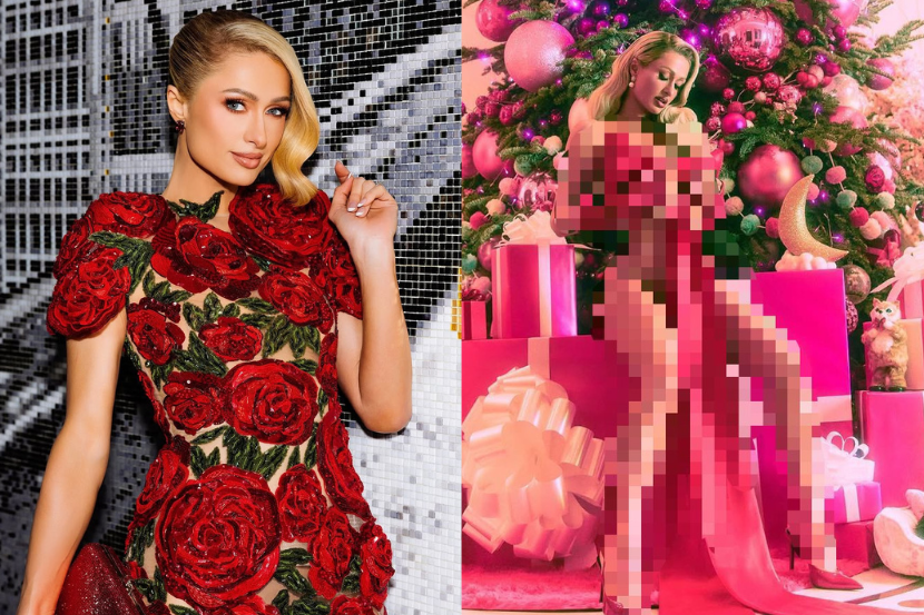 Terlalu seksi sambut krismas! Netizen sakit mata tengok Paris Hilton cuma tutup badan pakai reben merah