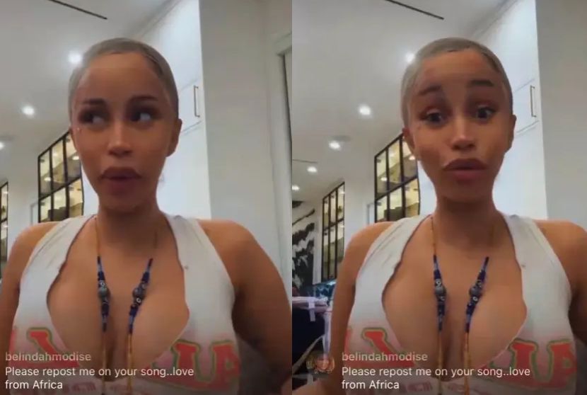 Ketika siaran langsung itu, Cardi B dilihat mengenakan wig cap sambil berjenaka mengenai kulit kepalanya.