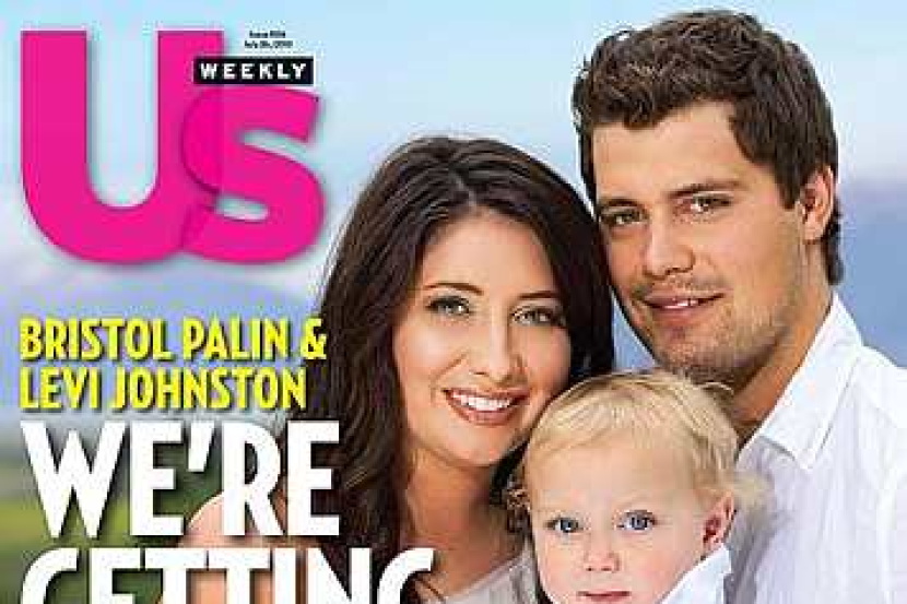 Bristol Palin bergambar bersama Levi Johnston dan anak mereka, Tripp pada muka hadapan majalah US Weekly pada 26 Julai 2010. - Foto AP