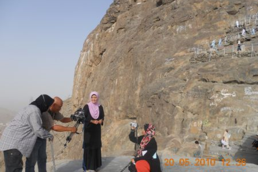 Krew segmen srikandi sewaktu pengambaran di Gua Hira'. - Foto koleksi TV3PROGRAM Jejak Rasul musim ke-16 bukan sahaja tampil dengan pengantara baru iaitu Ezzah Aziz Fawzy, Mohd Sidek Majin dan Mohd Fasli Mohd Idris.Malah ia juga tampil dengan sedikit kelainan melalui paparan ‘Trilogi Suara Kebenaran’ yang terbahagi kepada tiga segmen iaitu kisah-kisah srikandi, Jihad dan Yahudi & Bani Israel merangkumi 10 episod setiap satu. Program dokumentari sejarah berkonsepkan travelogue itu akan menemui penonton sepanjang bulan puasa tahun ini mulai 11 Ogos, pukul 6 petang, Isnin hingga Ahad di TV3.Program yang diterbitkan oleh penerbit eksekutif , Zainal Ariffin Ismail itu buat pertama kalinya akan disiarkan di Republik Indonesia di stesen televisyen swasta Indonesia, TPI.Buat julung kalinya juga, Jejak Rasul 16 membuka ruang kepada kaum wanita sebagai 'bunga' penyeri program yang dibawakan oleh RHB Islamic Bank Berhad itu.Menariknya, tiga orang wanita iaitu Ezzah sendiri, penerbit dan pengarahnya, Mazlin Nordin serta penyelidik dan wartawan penyiaran, Shadiya Abbas (hos Haiwan Teladan) berpeluang melakukan penggambaran sendiri dengan hanya dibantu oleh seorang krew lelaki, jurukamera Jebat M Rosli.“Tak pernah lagi dalam sejarah Jejak Rasul, wanita turut serta dalam program ini. Buat pertama kalinya, kami diberikan peluang untuk membuat pengambaran selama 10 episod.“Semua kerja kami lakukan sendiri termasuk memikul tripod sepanjang melakukan penggambaran selama 21 hari pada April lalu di Syria, Mesir dan Arab Saudi. Walaupun menjalani penggambaran semasa cuaca yang panas, kami tetap bersemangat mengenangkan perjuangan srikandi Islam zaman dahulu,” kata Mazlin semasa majlis pelancaran dan sidang media Jejak Rasul 16 di Sri Pentas, Bandar Utama, Isnin.Majlis yang dilancarkan oleh Menteri Pembangunan Wanita, Keluarga dan Masyarakat, Senator Datuk Seri Shahrizat Abdul Jalil itu turut disiarkan secara langsung melalui program Wanita Hari Ini.Tambah Mazlin: “Lebih memeritkan semasa kami mendaki Gua Hira’ selama tiga jam bagi menyelami kisah isteri Rasulullah, Siti Khadijah Khuwailid semasa mendaki gua itu untuk menghantar makanan kepada suaminya.“Saya tak dapat bayangkan betapa kuat dan bersemangatnya wanita yang waktu itu dianggarkan berusia 52 tahun sehingga saya pun terpaksa menggunakan tongkat untuk mendaki gua itu. Tetapi atas semangat mengenangkan perjuangan wanita itu, saya dan krew lain meneruskan perjalanan kami sehingga selesai.“Selain itu, kami mengalami kesukaram dan mengambil masa juga untuk memikirkan gambaran wanita-wanita itu bagi mengelakkan timbulnya isu lain kerana kita tidak boleh sebarangan untuk menggambarkan tokoh-tokoh wanita Islam ini.”Sementara itu, Ezzah berkata pembaharuan yang diterimanya itu diharapkan mampu merubah tanggapan tentang wanita yang tergolong dalam kelas kedua masyarakat.“Tokoh wanita Islam dulu, bukan sahaja banyak membantu lelaki dengan mengorbankan harta benda, malah menjadi tempat rujukan dan meminta nasihat daripada lelaki. Ada juga wanita yang dilantik menjadi datuk bandar pertama dalam Islam semasa zaman Saidina Umar Al-Khattab.“Saya dan Shadiya melakukan kajian dari buku sejarah Islam, kitab serta temubual dengan pakar-pakar seperti ustazah di dalam dan luar negara. Setelah melalui penggambaran ini, saya rasa tersentuh dengan bagaimana susahnya wanita-wanita ini melalui cabaran dan lebih banyak bersyukur dengan apa yang dilalui sekarang,” ujar Ezzah yang sebelum ini banyak mengelolakan program wanita termasuk Wanita Hari Ini dan Nona.Dalam rancak berbual, Ezzah sempat menceritakan pengalaman menarik bersama krew srikandi akibat kata-kata yang terpacul dari mulutnya.“Seperti biasa, kita perlu berhati-hati untuk bercakap ketika berada di sana. Waktu saya dan krew di padang pasir sedang melakukan penggambaran, tiba-tiba seekor ular keluar dari dalam tanah tempat saya berpijak. Sebelum itu, saya ada cakap berhati-hati jika nak buang air di situ kerana bimbang ada ular atau binatang lain,” ceritanya.Di sebalik pembikinan program itu, dalam masa yang sama Ezzah berasa seronok dapat mempelajari dan menyelami sejarah wanita zaman dahulu dengan harapan apa yang diusahakan dapat disampaikan dalam program itu.Dalam segmen srikandi, Ezzah akan mengupas perjuangan dakwah tokoh-tokoh seperti Siti Khadijah Khuwailid, Siti Fatimah Az-Zahraa’, Fatimah Al-Khattab dan Siti Aisyah Abu Bakar.Antara kisah menarik lain ialah pertemuan unik dengan salah seorang ikon tersohor di bumi timur tengah, Permaisuri Loulwah Al Faisal, puteri kepada mendiang Permaisuri Effat Al-Thunayyan yang merupakan pengasas kepada Universiti effat di Jeddah, institusi pengajian tinggi terkenal yang ditubuhkan khas untuk kaum Hawa yang menyediakan platform bebas dan tidak terkongkong sebagai inisiatif untuk menyokong dan menekankan pembangunan minda dan potensi semua pelajar-pelajar wanita Muslim.Menerusi 10 episod seterusnya, penerbit Muhamad Amin Yusoff dengan bantuan Abdullah Sidek Majin sebagai pengantara segmen jihad akan cuba menjelaskan objektif serta konsep jihad dan gambaran situasi yang membenarkan pertempuran sebagai benteng terakhir untuk memelihara kesucian agama dan nyawa umatnya.Manakala dalam segmen Yahudi & Bani Israel, penerbit dan pengantara Mohd Fasil Mohd Idris akan mengupas konflik di Palestin, pemahaman terhadap erti istilah Israel, Yahudi dan Zionis menerusi 10 episod seterusnya.