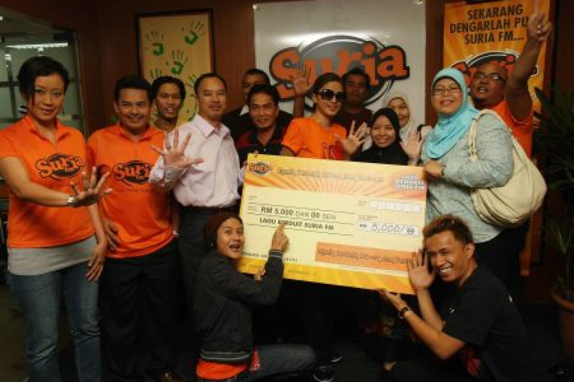 Salah seorang pemenang Lagu Berduit, Hamimah bersama penyampai Suria FM semasa majlis penyampaian hadiah di pejabat Suria FM, di ibu kota, Selasa. - Foto oleh ONG SOON HIN