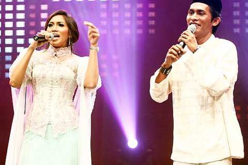 Ziana Zain dan protegenya, Mohd menyanyikan lagu rap semasa rakaman Mentor Raya 2010. - Foto oleh ALIF FARHAN