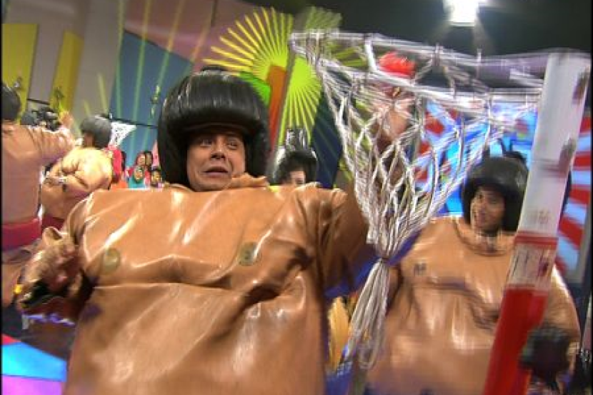 Danny ketika bermain permainan 'Bola Sumo' dalam Ewah Ewah Raya. - Foto TV3DALAM banyak-banyak aktiviti, permainan "Bola Sumo" yang menyaksikan rakan artis rempuh-merempuh di antara satu sama lain adalah satu rancangan yang agak melucukan.Program khas Aidilfitri iaitu Ewah-Ewah Raya dijangka mampu menghangatkan suasana Hari Raya keempat yang akan menampilkan artis-artis ternama seperti Fouziah Gous, Iqram Dinzly, Erry Putra, Erra Fazira, Fizo Omar dan Danny X-Factor bersama hos Raja Azura dan Nabil. Artis jemputan itu telah dibahagikan kepada dua kumpulan di mana Fouziah Gous, Iqram Dinzly dan Erry Putra mewakili Rumah Merah manakala Erra Fazira, Fizo Omar dan Danny X-Factor pula mewakili Rumah Biru.Dalam permainan "Bola Sumo" itu kedua-dua kumpulan dikehendaki merebut bola dan memasukkan bola tersebut ke dalam jaring, sama seperti sukan bola jaring dengan memakai kostum sumo.Sesi rakamannya telah berlangsung di Studio 2, Glenmarie, Shah Alam pada 5 Julai lalu.Seramai 100 orang penonton yang terdiri daripada orang awam telah hadir memeriahkan program berkenaan.Selain itu, mereka harus menempuhi dua cabaran lain iaitu seperti "Tiup Bola" dan "Titi Ketupat"Dalam cabaran "Titi Ketupat", Rumah Merah dan Rumah Biru perlu mengambil sebanyak mungkin ketupat yang digantung ketika meniti jambatan.Nampak seperti mudah tetapi untuk meniti jambatan dan terpaksa menghadapi halangan dibaling bola oleh pihak lawan adalah tugas yang sukar. Cabaran ketiga dan terakhir ialah "Tiup Bola" yang merupakan cabaran paling sukar kerana peserta hanya boleh menggunakan mulut untuk meniup bola.Menariknya penonton turut dijemput untuk membantu peserta yang mengambil bahagian rumah.Menurut Penerbit Eksekutifnya Khalijah Mohamed, di samping tradisi kunjung mengunjung ke rumah saudara mara dan sahabat handai, program yang akan keudara pada pukul 11 pagi itu dijangka mampu menghidupkan suasana Aidilfitri.