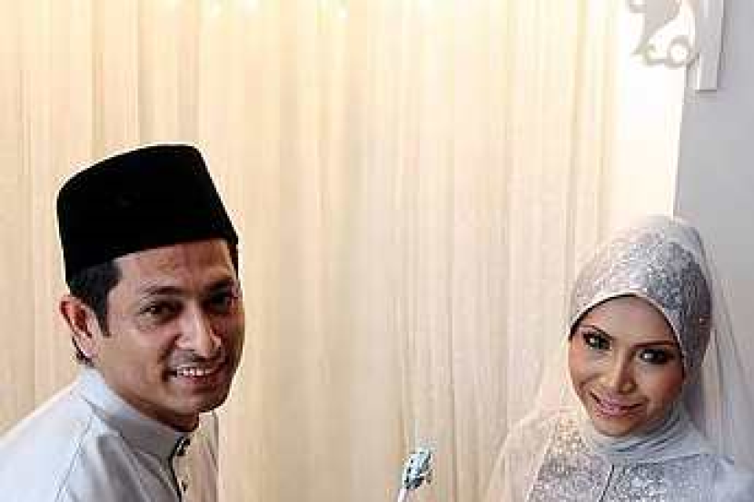 Aida menerima mas kahwin daripada Husfarid selepas sah bergelar suami isteri. - Foto oleh LOW LAY PHONHULU KELANG: Dengan sekali lafaz, aktres Aida Aris, 38, sah bergelar isteri kepada Husfarid Shaikh Ali @ Shaikh Hussain, 38, di kediaman pengantin perempuan pada pukul 10.45 pagi di Taman Sierra Ukay, di sini, Sabtu.Kedua mempelai dinikahkan oleh Ustaz Daim Jajuli, pegawai tadbir dan pendaftar kanan dari Pejabat Agama Islam Gombak Timur, Keramat berwalikan abang Aida, Amiruddin Mat Aris, 42, dengan mas kahwin RM330. Menurut Amiruddin, bapa Aida, Mat Aris Janor, 83, tidak boleh mewalikan pernikahan anak perempuannya itu kerana uzur.Aida turut menerima hantaran berupa sebentuk cincin daripada pihak lelaki dan membalas kepada pasangannya dengan hantaran yang sama.Aktres yang popular menerusi drama bersiri Awan Dania ini akui lega, gembira dan terharu selepas diijabkabulkan."Alhamdulillah, segala-galanya berjalan dengan baik walaupun dalam keadaan tergesa-gesa. Selepas kami mendapat kebenaran dari pejabat agama pada minggu lalu, terus kami menetapkan tarikh perkahwinan dan membuat persiapan dalam masa seminggu.“Kalau boleh, memang saya nak beraya dengan suami pada tahun ini,” kata Aida yang anggun mengenakan pakaian potongan kebaya moden berwarna kelabu rekaan Arefen Zaidin.Jika mengikut perancangan, mereka mahu disatukan sebelum bulan Ramadan tetapi disebabkan mempunyai masalah dokumen perkahwinan di pejabat agama, maka perkahwinan itu terpaksa ditangguhkan.Kira-kira 50 orang hadir dalam majlis sederhana itu termasuk bapa Aida, ibu Aida, Siti Khadijah Abu Sujah, 72, ibu Husfarid, Maznah Jaafar, 63, bapa Husfarid, Shaikh Hussein Shaikh Ibrahim, 72, dua orang anak Husfarid iaitu Farish Nasha, 9, dan Danish Hazin, 7, serta pelakon Sharifah Haslinda dan suami, Datuk Seri Reezal Merican Naina.Sementara persalinan baju Melayu kelabu Husfarid turut direka oleh Arefen Zaidin. Selain itu, pelamin rekaan Butik Pengantin Inspirasi Cinta yang ditaja oleh pelakon Sharifah Shahira serta solekan oleh Su Cantik.Majlis resepsi mereka akan berlangsung pada malam ini di kediaman Aida dengan bertemakan warna merah dan putih. Arefen Zaidin juga bertindak selaku pereka persalinan untuk resepsi kedua-dua mempelai. Seramai 200 tetamu yang dijemput meraikan mempelai terdiri daripada kaum keluarga, sanak saudara dan rakan terdekat.Buat sementara ini, mereka tidak pasti sama ada akan mengadakan majlis kenduri besar-besaran selepas ini.Aida dan Husfarid telah melalui tempoh perkenalan sejak 17 Februari tahun ini selepas berjumpa di majlis hari jadi Aida. Husfarid merupakan Ketua Pramugara MAS dan telah hidup menduda selama tiga tahun. Hasil perkahwinan pertamanya, dia dikurniakan dua orang anak.Bagi Aida yang menjanda selama lima tahun, ini merupakan perkahwinan keduanya dan tidak dikurniakan cahaya mata selepas berkahwin dengan produser program, Bob Azrai.