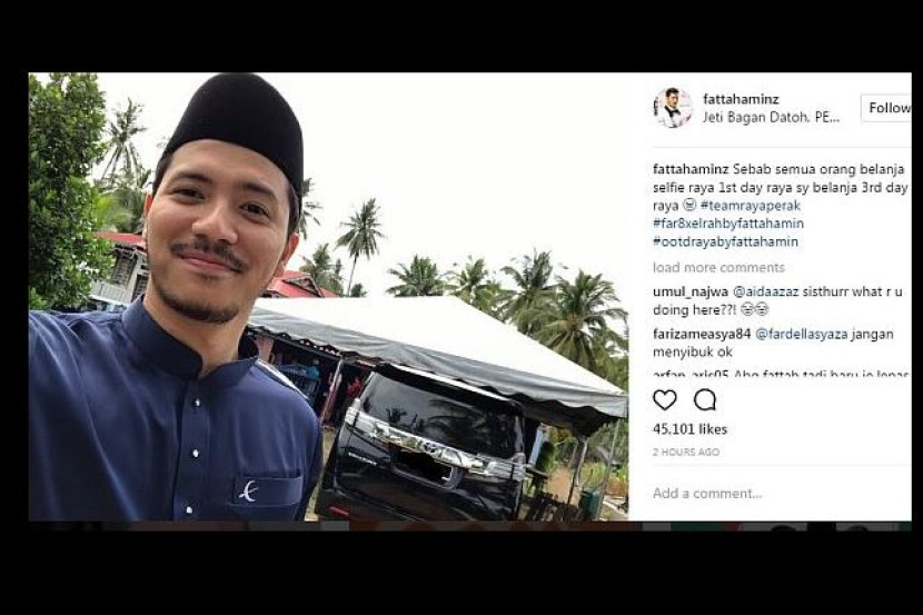 HAA... Siapa kata pengaruh pak menteri tak boleh lawan populariti artis! Buktinya, pelakon popular Fattah Amin pun dah mula berjangkit meniru kapsyen 'selamba' yang pernah diguna pakai Menteri Belia dan Sukan, Khairy Jamaluddin menerusi posting Instagram Stories beliau yang menjadi tular di media sosial sejak Isnin. Fattah menerusi dua gambar raya yang dimuatnaik di laman instagramnya pada Selasa mencuri perhatian netizen gara-gara kapsyen tersebut. Menerusi gambar pertama, Fatah lengkap berbaju Melayu biru gelap dari koleksi Far8Xelrah By Fattah Amin sedang berswafoto di laman rumah kampungnya di Bagan Datoh, Perak menulis kapsyen berbunyi: Fattah beraya di Bagan Datoh, Perak bersama keluarga tercinta. @fattahaminz: Sebab semua orang belanja selfie raya 1st day raya, saya belanja 3rd raya #teamrayaperak # far8xelrahbyfattahamin #ootdrayabtfattahamin Manakala sekeping lagi gambar yang dimuatnaik dirakam bersama ahli keluarga ditulis dengan kapsyen berikut: @fattahaminz: Sebab semua orang belanja gambar ready tengok camera, saya nak belanja gambar tak ready tengok camera #firstdayraya #myhappyfamily #teamrayaperak #ootdrayabyfattahamin Terdahulu, Khairy atau KJ yang terkenal dengan jiwanya yang sentiasa dekat dengan golongan belia memuatnaik dua gambar lengkap berbaju Melayu berona biru lembut dengan kapsyen yang cukup bersahaja namun mampu membuatkan ramai tersenyum apabila membacanya. Kapsyen KJ pada foto yang dimuatnaik di instagram stories beliau disifatkan begitu dekat dengan jiwa belia. @Khairykj: Ramai upload gambar berdiri tengah jalan, so apa lagi? @Khairykj: Ramai yang upload gambar OOTD tak pandang camera, so apa lagi? OOTD atau Outfit of the day adalah istilah yang digunakan oleh pengguna laman sosial untuk pakaian yang dipakai pada hari berkenaan.