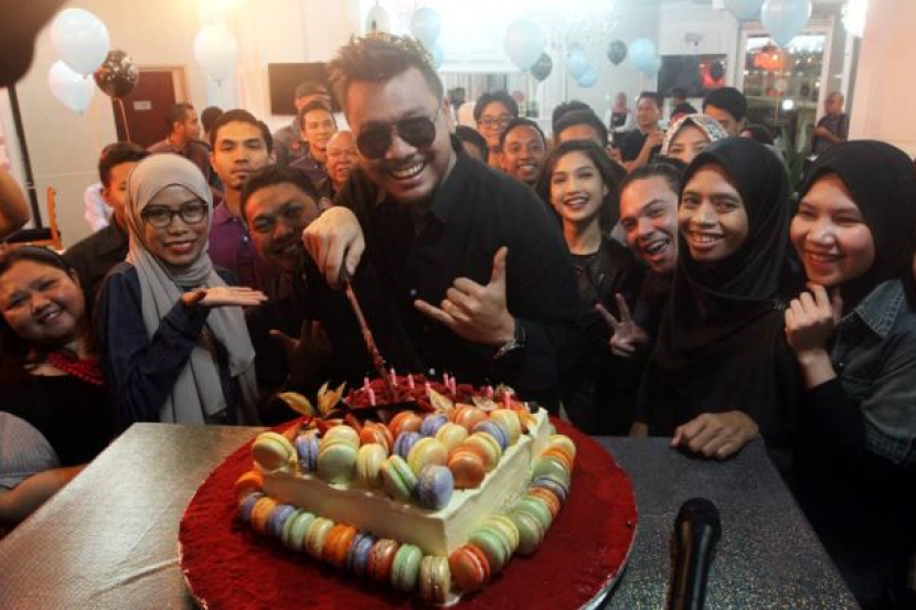 Awi bersama peminat yang hadir memberikan kejutan bersempena hari jadinya yang ke-32. Foto M. AZHAR ARIF