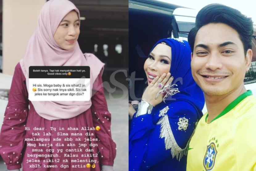 ISTERI pelakon Putra Amaris iaitu Nur Syazwani Alias menjelaskan statusnya dengan aktor itu masih lagi sebagai suami-isteri. Nur Syazwani yang kini hamil enam bulan memberitahu hubungan suaminya dengan jutawan kosmetik Datuk Sri Vida yang digosipkan ketika ini hanya atas urusan kerja. "Ya Amaris masih suami saya, tetap suami saya dan selamanya selagi Allah izinkan satu-satunya suami saya. "Selama mana dia tidak melampau, saya tidak cemburu, memang kerja dia akan jumpa dengan semua orang yang cantik dan berpengaruh. "Kalau sikit-sikit nak cemburu, nak melenting, tak boleh kahwin dengan artis," katanya. Amaris berkahwin pada 5 Januari lalu. Nur Syazwani menjelaskan perkara itu di laman sosial Instagram miliknya selepas ditanya beberapa pengikut menganai rumah tangga mereka. Pada Julai lalu, pelakon Bicara Cinta ini dilaporkan mempunyai hubungan rapat dengan usahawan kosmetik itu apabila kerap memuat naik foto bersama. Selain itu, terdapat juga tuduhan mengatakan dia mula 'menghimpit' Vida untuk mengambil peluang selepas usahawan itu memecat pembantu peribadinya baru-baru ini. Amaris atau Amran Ismail, 33, bergelar suami kepada Nur Syazwani Alias, 28, pada 5 Januari lalu di kediaman keluarga wanita itu di Batu Pahat, Johor. Dalam pada itu menjawab pertanyaan berkaitan fotonya tidak pernah dimuat naik oleh aktor berkenaan, Nur Syazwani berkata, laman sosial suaminya itu hanya atas urusan kerja. "Alhamdulillah, kami baik-baik sahaja, laman Instagram itu untuk kerja dia. Saya lagi suka bersederhana," katanya yang dijangka melahirkan cahaya mata pertamanya pada awal Disember depan.