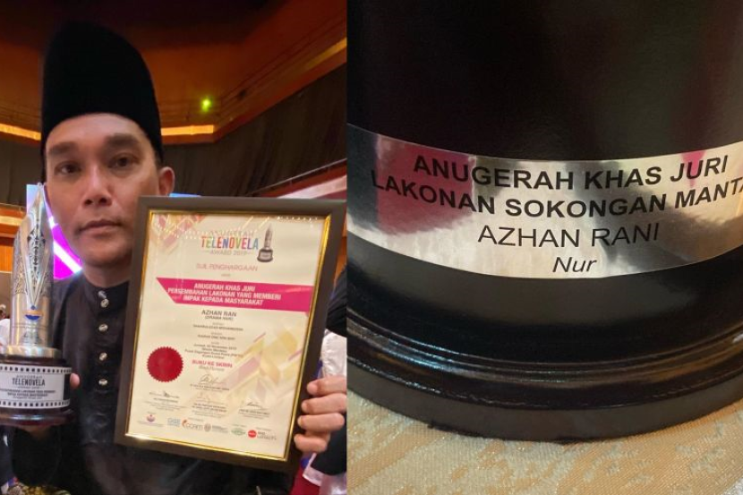 PELAKON Azhan Rani meluahkan rasa syukur apabila menerima anugerah khas juri di malam Anugerah Telenovela 2019 yang berlangsung di Pusat Dagangan Dunia Putra (PWTC), pada Jumaat. Menurut Azhan, 43, dia berharap pengiktirafan yang diberikan bukan atas belas kasihan memandangkan ia merupakan satu penghargaan khas daripada juri. ARTIKEL BERKAITAN: Azhan Rani dan Fedtri Yahya tegur netizen hantar mesej biadab - “OKU bukan alasan untuk jadi orang tak bertamadun” Azhan turut mengucapkan terima kasih kepada penulis dan pengarah drama Nur iaitu Shahrulezad Mohameddin yang membuatkan dia berjaya berada di pentas pada malam tersebut. "Syukur Alhamdulillah. Selalu jadi tukang tepuk malam ni aku pula kena tepuk. Semoga bukan anugerah kesian. Kejayaan Azhan disebabkan berkat daripada doa serta restu ibunya. "Setinggi-tinggi terima kasih buat juri atas penghargaan ini. Tak lupa juga @radius.one terutama penulis dan pengarah kesayangan @budakijat yang menyebabkan Azhan Rani naik pentas malam ni. "Pastinya akan berderet ucapan tahniah untuk ini, apapun aku dahulukan dengan terima kasih. Memadailah puji-pujian buat Allah SWT yang mengizinkan segala kebaikkan. "Yang lebih penting disebalik seketul award, puji-puji dan tepuk sorak... apa yang akan jadi esok," tulis Azhan menerusi laman Instagramnya. Azhan menerima anugerah khas juri persembahan lakonan yang memberi impak kepada masyarakat menerusi drama Nur arahan Shahrulezad terbitan Radius One Sdn Bhd. Dalam pada itu, Azhan berkata biarpun drama tersebut menjadi fenomena namun ibunya jarang menonton kerana sukar berjaga di waktu malam. Kalau abah ada dia akan jadi penyampai untuk mak. Harap boleh bagi mak sikit gembira dengan hadiah malam ini. AZHAN RANI Pelakon Bagaimanapun, dia menganggap anugerah yang diterima itu berkat daripada restu serta doa ibunya yang tidak pernah tinggal walau sehari. "Percaya tak, heboh satu Malaysia tengok drama #Nur tu, mak aku bukan tengok sangat pun. Memang daripada dulu dia susah nak berjaga malam tengok TV. "Lepas berita, biasa dia akan masuk tidur tapi mak kata mak selalu sebut aku dalam doa dia, tak pernah tinggal walau sehari pun. "Rasa-rasanya esok pagi (Sabtu) baru mak aku tau apa yang jadi malam ni. Terima kasih buat doa dan restu yang tak pernah putus. "Kalau abah ada dia akan jadi penyampai untuk mak. Harap boleh bagi mak sikit gembira dengan hadiah malam ini. Maaf abah, tak banyak detik gembira dapat An bagi untuk abah dulu," katanya.