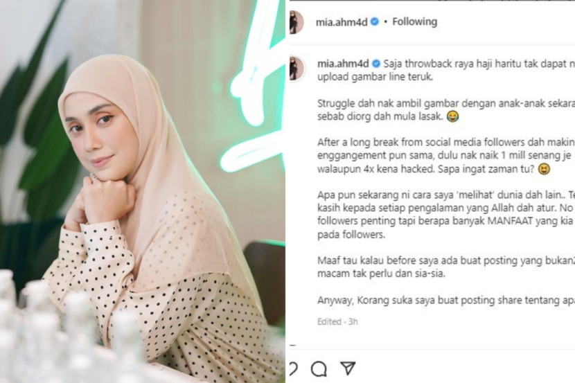EKORAN memilih untuk berehat daripada menggunakan media sosial, pengikut Instagram pelakon dan usahawan Mia Ahmad menunjukkan penurunan. Mia atau Samiha Ahmad Baderi, 34, berkata, perkara itu berlaku selepas sebulan dirinya tidak aktif dan situasi berkenaan berbeza dibandingkan sewaktu namanya menjadi sebutan menerusi drama Hati Perempuan di TV3 pada 2015. "Selepas sekian lama berehat daripada media sosial, pengikut sudah semakin kurang, jalinan hubungan (engagement) pun sama. "Dahulu untuk mendapatkan satu juta senang saja walaupun empat kali (akaun) digodam. Siapa ingat zaman itu?," katanya. Mia meluahkan pandanganya di Instagram. Bagaimanapun kata Mia, semua itu bukan lagi perkara utama sebaliknya memberitahu pengalaman hidup banyak mengajarnya untuk lebih selektif tentang perkongsian kandungan bermanfaat kepada pengikutnya. "Apa pun sekarang, ini cara saya melihat dunia sudah lain. Terima kasih kepada setiap pengalaman yang Allah aturkan. ARTIKEL BERKAITAN: Akibat biar tengok YouTube tanpa limit, anak sulung Mia Ahmad hadapi masalah 'speech delay' - “Saya menyesal, baru tahu dah buat silap” ARTIKEL BERKAITAN: Anak Mia Ahmad tunjuk perkembangan positif, masalah ‘speech delay’ makin pulih - “Banyakkan sedekah dengan niat untuk tolak mudarat” "Jumlah pengikut penting, tetapi berapa banyak manfaat yang kita berikan kepada mereka? Maaf kalau sebelum ini saya ada memuat naik kandungan yang bukan-bukan dan sia-sia," ujarnya. Mia bersama suami, Mohd Izham Tarmizi dan dua anak mereka, Issa dan Iris. Menjelaskan mengenai kehilangannya, Mia berkata selain memberi fokus kepada keluarga, dia juga berehat ekoran dimasukkan ke hospital akibat demam denggi. "Hari itu masuk hospital sebab denggi. Kasihan suami jaga dua anak kecil di rumah. Apa pun sekarang ini, cara saya melihat dunia sudah berbeza. MIA AHMAD PELAKON & USAHAWAN "Bila datangnya sakit, kita lebih menghargai antara satu sama lain. Itulah namanya kemanisan dalam setiap ujian," jelasnya. Di zaman kemuncaknya, Mia pernah popular menerusi drama Hati Perempuan yang mendapat sambutan hangat penonton selain beberapa projek lain seperti Superbike The Movie, Jibam, Siapa tu?, Ms. Boss Miss Stalker, Jejak Kamila dan Sara Kirana. Mia mendirikan rumah tangga dengan pemain bola sepak Johor Darul Takzim (JDT), Mohd Izham Tarmizi pada 2017 dan pasangan itu dikurniakan dua cahaya mata, Sayf Issa, 4 dan Iris, 2 tahun. Dapatkan info dengan mudah dan pantas! Join grup Telegram mStar DI SINI