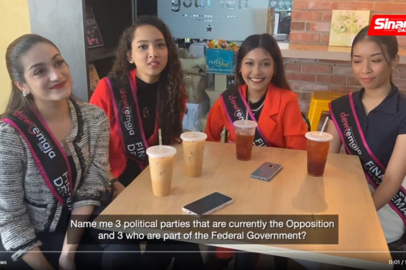 Tangkap layar video memaparkan empat peserta Dewi Remaja 2022 ketika menjawab soalan bekaitan politik.