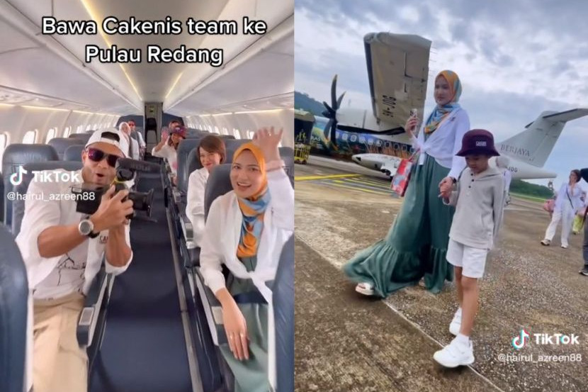 SETIAP kali berkongsi kisah percutian, pasangan Hairul Azreen dan Hanis Zalikha sentiasa menjadi tumpuan peminat kerana terpegun dengan kemewahan dan destinasi luar biasa yang dipaparkan di media sosial. Terbaharu, pasangan itu sekali lagi mencuri perhatian apabila mereka dilihat menempah sebuah pesawat untuk membawa kesemua kaki tangan mereka bercuti ke sebuah pulau peranginan di Pantai Timur. Hairul dan Hanis dipercayai membawa rombongan tersebut ke Pulau Redang, Terengganu untuk bercuti selain menjalani penggambaran produk terbaharu keluaran syarikat mereka. Menerusi video yang dikongsikan, ramai memuji sifat murah hati aktor berkenaan yang sanggup mengeluarkan belanjag besar untuk menghargai semua staf. Hairul turut berkongsi aktiviti mereka di Pulau Redang. Kagum melihat percutian mereka, ada juga dalam kalangan netizen yang secara bergurau ingin bekerja dengan pasangan itu demi merasai percutian mewah seperti itu. "Produk tak kenal, tapi banyak duit. Memang susah nak jumpa orang macam ini. ARTIKEL BERKAITAN: [VIDEO] Bertuahnya Hairul Azreen! Selepas kapal layar, jutawan Vincent Tan ajak naik jet peribadi pula ARTIKEL BERKAITAN: Percutian mewah jadi tarikan, peminat syak Hairul Azreen Sultan Pemurah "Bang, kalau ada nak tolong tarikkan beg beritahu, saya free! Saya boleh jadi babysitter bertauliah. "Bang, banyak lagi seat kosong, nak ikut sama!," komen netizen. Sebelum ini, Hairul dan Hanis pernah mencuri tumpuan apabila mereka dilihat menaiki jet peribadi milik jutawan ternama, Tan Sri Vincent Tan. Malah mereka juga pernah menaiki sebuah helikopter hanya untuk membawa keluarga pergi bercuti. Hairul dan Hanis mendirikan rumah tangga pada Jun 2015 dan hasil perkahwinan itu mereka dikurniakan dua cahaya mata, Yusof Iskandar, 6 dan Alissa Aisyah, 3 tahun. Dapatkan info dengan mudah dan pantas! Join grup Telegram mStar DI SINI
