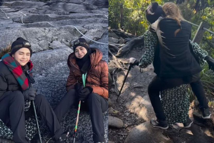 Dalam hantaran tersebut, dia turut memuat naik video memaparkan Bella, 31, sedang mengendongnya sambil menuruni gunung berkenaan.