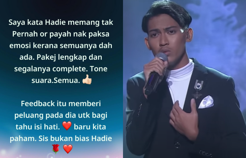 Tambahnya lagi, ulasan yang diberikan pada konsert suku akhir yang berlangsung pada malam Ahad adalah untuk memberi ruang kepada Hadie menyampaikan isi hati dan cerita di sebalik persembahan diberikan dengan jujur.