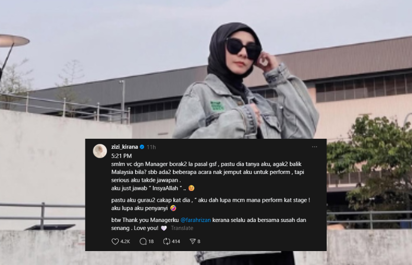 Zizi menulis perkara tersebut di laman Threads miliknya pada malam Ahad.