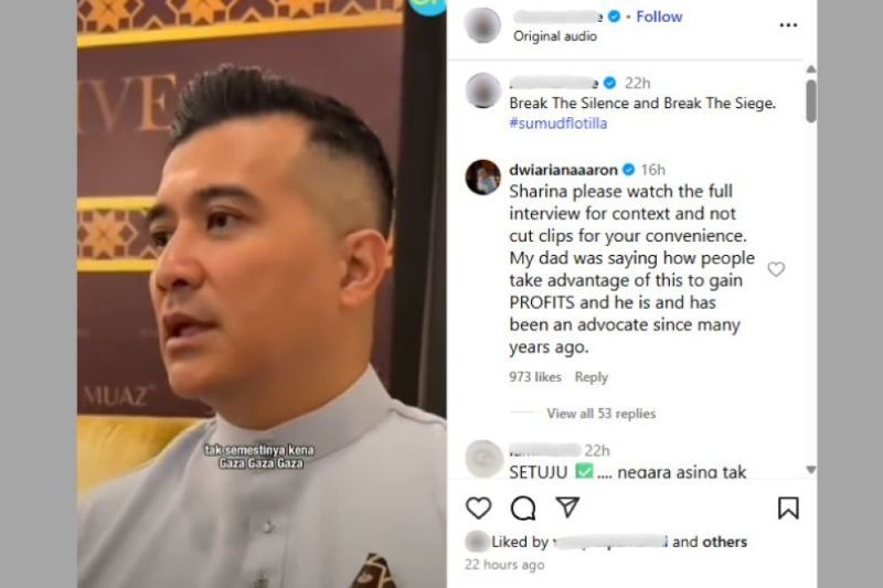 ARTIKEL BERKAITAN: Aaron Aziz perjelas salah faham isu Gaza, minta netizen tonton video temu bual penuh