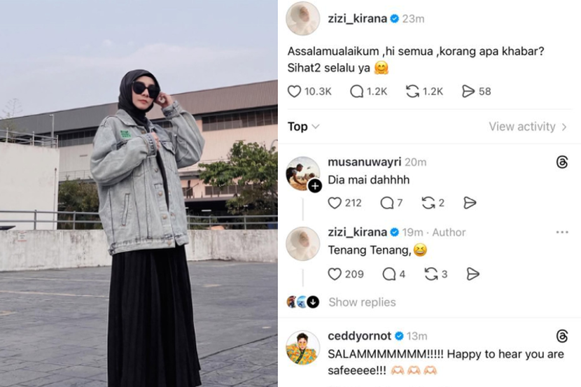 Dalam satu hantaran di laman Threads, Zizi atau Nur Fazelah Mad Tahil sempat menyapa dan bertanya khabar kepada pengikutnya.