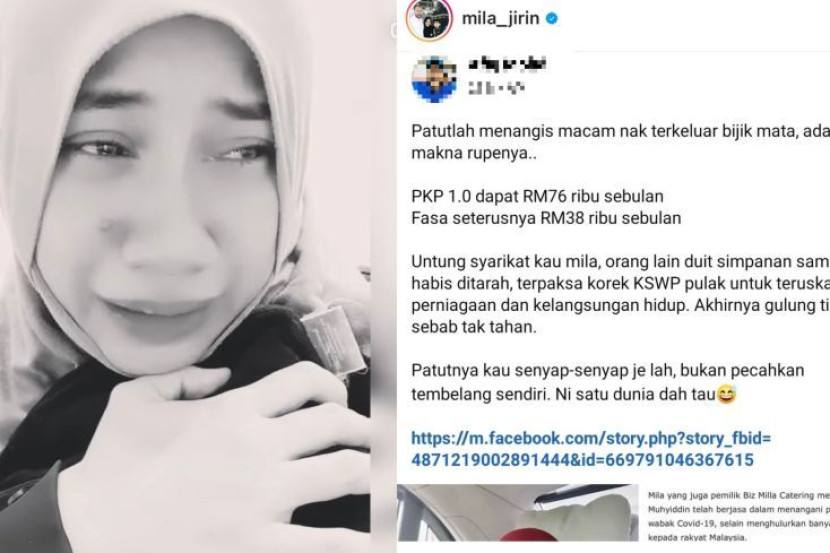 MELAMPAU! Kenyataan dimuat naik seorang individu di laman Facebook dengan mendakwa Mila Jirin menerima sejumlah wang bantuan daripada bekas Perdana Menteri Tan Sri Muhyidin Yasin dianggap keterlaluan dan berunsur fitnah. Menurut Mila atau nama sebenarnya, Norsyarmilla Jirin, 33, dia terpaksa mengambil tindakan undang-undang terhadap individu berkenaan yang dianggap menjejaskan reputasinya sebagai ahli perniagaan. "Disebabkan fitnah yang telah dilemparkan ini. Ia telah menjejaskan reputasi saya. ARTIKEL BERKAITAN: Ramai ‘panas hati’ Mila Jirin menangis Muhyiddin nak letak jawatan, siap tuduh dibayar - “Saya mensyukuri bantuan, bukan extreme politik” "Pihak guaman menasihati saya dan juga tindakan lanjut akan diambil kepada Encik Afiq (pengguna facebook). “Semua komen yang berlaku di ruangan komen juga sudah diteliti,” tulisnya di Instagram. View this post on Instagram A post shared by B I Z M I L L A (@mila_jirin) Mila turut memuat naik paparan skrin kenyataan individu berkenaan di platform berkenaan pada Rabu. Menerusi perkongsian itu, individu berkenaan mendakwa penyanyi lagu Persis Mutiara itu menerima RM76,000 sebulan ketika Perintah Kawalan Pergerakan (PKP) pertama dan RM38,000 sebulan pada fasa berikutnya. “Patutlah menangis macam nak keluar biji mata, ada makna rupa-rupanya. “PKP 1.0 dapat RM76,000 sebulan, fasa seterusnya RM38,000 sebulan. Saya hanya mensyukuri bantuan yang diterima iaitu bantuan subsidi upah MILA JIRIN PENYANYI “Untung syarikat kau Mila, orang lain duit simpanan sampai habis ditarah, terpaksa korek KWSP untuk teruskan perniagaan dan kelangsungan hidup. Akhirnya gulung tikar sebab tak tahan. “Patutnya kau senyap-senyap jelah jangan pecahkan tembelang sendiri. Ni satu dunia tahu,” tulis individu tersebut. Menjelaskan tentang jumlah yang dinyatakan individu berkenaan, Mila ketika dihubungi mStar mengakui dia menerima wang tersebut. Bagaimanapun tegas Mila, peruntukan itu merupakan bayaran daripada Program Subsidi Upah (PSU) yang diperkenalkan kerajaan bagi membantu perniagaan terutama dalam kalangan perusahaan kecil dan sederhana (PKS). Ia berfungsi untuk menanggung gaji pekerja dan memperkemas aliran tunai syarikat selepas terjejas akibat pandemik Covid-19 sejak tahun lalu. "Ini pengalaman pertama saya sebagai peniaga dapat bantuan yang cukup besar. "Untuk pekerja mereka bantu RM1,200 seorang selama enam bulan kepada yang layak. Syarikat saya 62 orang kali dengan RM1,200 memang dalam lebih RM70,000."Jumlah itu memang betul tetapi apa yang saya sedih orang cakap saya terima duit haram," ujarnya. Dalam pada itu, Mila sekali lagi menegaskan tentang bantuan yang diterima daripada kerajaan itu adalah manfaat kepada semua pekerjanya. Katanya, bukan dia sahaja yang mendapat bantuan subsidi upah, malah ratusan ribu majikan lain turut layak menerima bantuan berkenaan. "Saya hanya mensyukuri bantuan yang diterima iaitu bantuan subsidi upah. Ratusan ribu majikan lain juga menerima manfaat yang sama untuk menampung para pekerja. Mila mengusahakan perniagaan perancangan perkahwainan Bizmilla. "Hasil bacaan saya ianya dah memanfaatkan kepada jutaan pekerja termasuklah para pekerja di Bizmilla. "Untuk pengetahuan subsidi upah dibayar mengikut jumlah pekerja yang layak," tulisnya lagi. Pada Ahad, Mila memuat naik video meluahkan perasaan sedihnya mendapat berita Tan Sri Muhyiddin Yassin akan meletak jawatan sebagai perdana menteri. Menerusi perkongsian memperlihatkan dia menangis sebak dengan situasi politik yang tidak menentu ini, ada juga segelintir netizen yang menuduh dia dibayar untuk bertindak demikian. Bagaimanapun Mila memberitahu, tindakannya itu tiada kaitan dengan unsur politik, malah hanya berkongsi rasa sedih dengan pengikut di Instagram. Dapatkan info dengan mudah dan pantas! Join grup Telegram mStar DI SINI TONTON VIDEO PILIHAN!