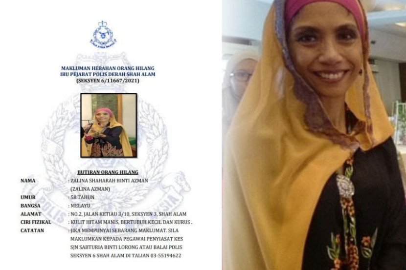 BEKAS personaliti TV3 iaitu Zalina Azman dilaporkan hilang menurut satu kenyataan yang dikeluarkan oleh Ibu Pejabat Polis Daerah (IPD) Shah Alam pada Isnin. Makluman orang hilang tersebut dimuat naik di Facebook rasmi Polis (IPD) Shah Alam yang memaklumkan kehilangan seorang wanita berbangsa Melayu bernama Zalina Shaharah Azman berumur 58 tahun. Fizikal Zalina juga turut disifatkan sebagai berkulit hitam manis, bertubuh kecil dan manis selain alamat terakhirnya di Seksyen 3, Shah Alam, Selangor. Ketua Polis Daerah Shah Alam, Asisten Komisioner Mohd Iqbal Ibrahim dalam satu kenyataan memberitahu keluarga Zalina membuat laporan tentang kehilangannya sejak 29 November tabhun lalu. Dalam laporan tersebut, anak kepada Zalina ada cuba mencari dan menghubungi ibunya sejak 24 November bagi memaklumkan bapa Zalina dimasukkan ke hospital namun usaha itu gagal. "Pada 29 November, pengadu dan bapa saudaranya pergi ke rumah ibunya di Seksyen 3 dan mendapati kereta ibunya berada di tepi rumah. ARTIKEL BERKAITAN: Zalina Azman: Menulis buku selepas bersara bukan 'trend' "Pengadu mendapati keadaan di dalam rumah tidak tersusun. Turut ditemui beg duit milik ibunya yang mengandungi kad pengenalan, lesen memandu, kad bank, kad kredit, kunci kereta serta wang tunai RM600. "Bagaimanapun, ibunya tidak dijumpai. Segala usaha mencari sudah dijalankan namun gagal menemui mangsa," katanya. Sementara itu, Senator Datuk Ras Adiba Mohd Radzi menerusi Instagramnya turut menyeru orang ramai membantu mencari sahabatnya itu. Dalam hantaran berbeza, Ras Adiba turut meminta Zalina segera pulang. "Di mana awak Zally (panggilan untuk Zalina). Tolonglah pulang, pulang ke rumah," tulisnya. Rakan seperjuangannya, Datuk Aznil Nawawi turut meninggalkan komen pada hantaran itu yang turut bertanyakan dimanakah bekas personaliti itu berada. Sehubungan itu, IPD Shah Alam menyeru orang ramai yang mempunyai maklumat supaya menyalurkan info berkenaan kepada pegawai penyiasat kes, Sarjan Sabturia Lorong atau Balai Polis Seksyen 6 Shah Alam di talian 03-5519 4622. Sebelum ini, Zalina cukup terkenal sebagai pembaca berita program Money Matters yang bersiaran di TV3. Dapatkan info dengan mudah dan pantas! Join grup Telegram mStar DI SINI