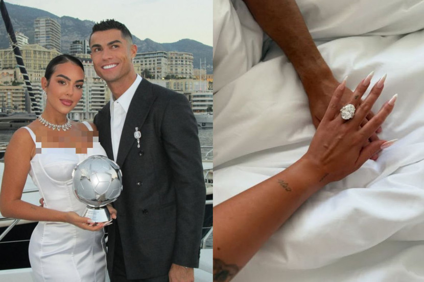 Georgina memuat naik foto cincin berlian di jarinya yang diletakkan di atas tangan Ronaldo.