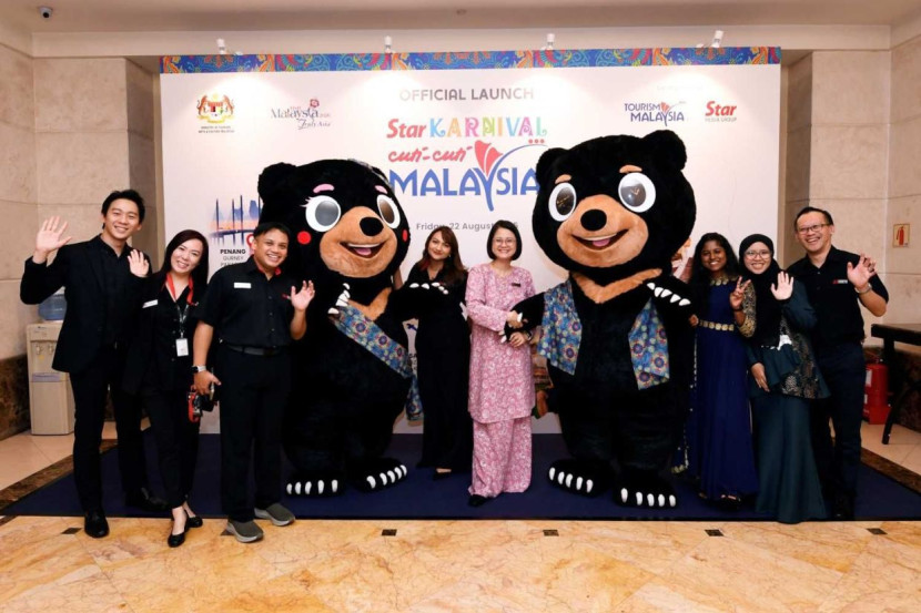 Menteri Pelancongan, Seni dan Budaya, Datuk Seri Tiong King Sing (tengah) bersama Ketua Pegawai Eksekutif Kumpulan SMG, Chan Seng Fatt (dua kiri) melancarkan Star Karnival Cuti-Cuti Malaysia di Menara Star pada 22 Ogos lalu.