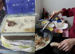 3. Masukkan tepung dan kacau dengan spatula secara kaup balik berselang seli dengan isi cempedak yang dikisar bersama sourcream dan susu full cream.
