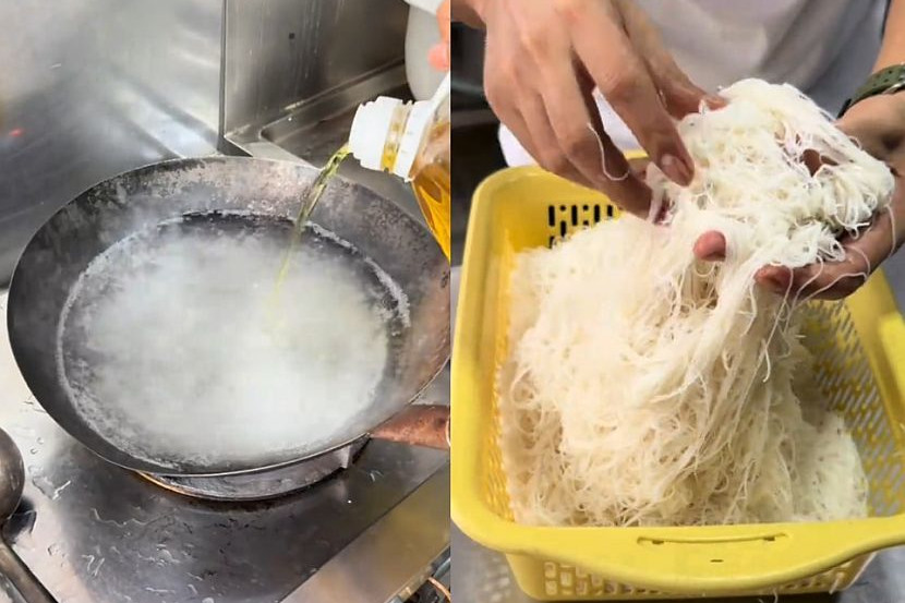 Bihun dicelur dalam air yang dicampur dengan sedikit minyak untuk mengelakkannya terputus dan kekal lembut. -Foto TT Rizal Tomyam