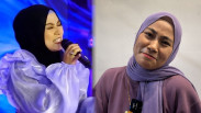 Normah yang tampil dengan fesyen tradisional manakala Kak KM pula dengan gaun labuh berwarna hijau.