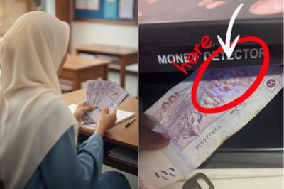 [V] Wanita terkejut pihak sekolah edar wang kertas RM100 Bantuan Awal Persekolahan palsu... Mujur koperasi ada mesin pengesan