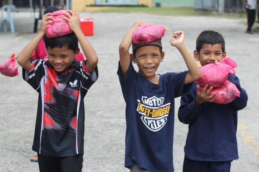 Gotong-royong memotong daging korban untuk dibahagikan kepada golongan memerlukan.