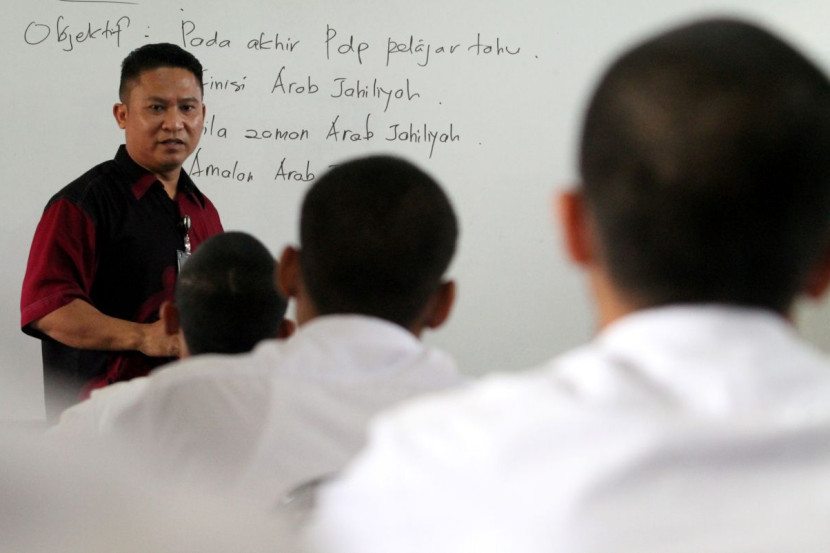 Seorang guru yang tekun mengajar anak muridnya. - Gambar Sekadar Hiasan