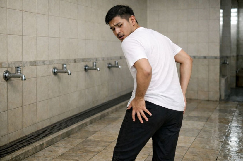 "Jadi saya anggap rasa lembap, basah atau licin itu hanya peluh atau bekas air mandian atau instinjak yang belum kering atau geseran antara otot dan bulu dubur," katanya.