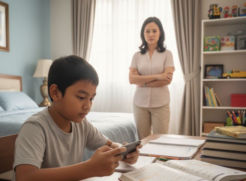 Ibu bapa perlu bersikap tegas dengan menghadkan penggunaan gajet untuk anak-anak. -Gambar hiasan AI