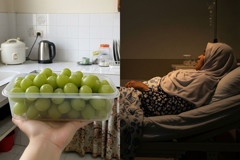 "Mak cik sebelah katil aku dalam wad ni, baru je keluar ICU sebab makan Shine Muscat.