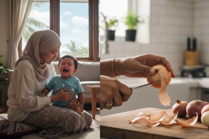 KEBANYAKAN ubat batuk tidak digalakkan untuk diberikan kepada bayi, terutamanya yang berusia bawah dua tahun kerana boleh mendatangkan kesan sampingan dan risiko kesihatan. Justeru, kebanyakan ibu bapa memilih kaedah semula jadi dan lebih selamat sebagai ikhtiar awal untuk melegakan batuk, selsema serta masalah kahak untuk si kecil. Antara petua tradisional yang masih diamalkan sehingga kini ialah penggunaan bawang merah, yang dipercayai membantu memberi rasa hangat pada badan serta melonggarkan saluran pernafasan bayi secara semula jadi.Gaul bawang yang ditumbuk dengan minyak telon dan sapukan pada tapak kaki bayi. -Gambar hiasan AIPetua itu masih diamalkan sehingga kini oleh segelintir keluarga sebagai ikhtiar sampingan, khususnya ketika bayi mengalami hidung tersumbat atau nafas berbunyi akibat kahak.Berikut cara penyediaannya:1. Bahan-bahan- Satu hingga dua ulas bawang merah.- Sedikit minyak telon atau minyak bayi.- Stoking atau kain nipis.2. Cara penggunaan- Kupas bawang merah, hiris atau ketuk kasar.- Gaulkan bersama sedikit minyak telon atau minyak bayi.- Sapukan pada tapak kaki bayi atau balut dalam kain nipis.- Sarungkan stoking supaya lebih kemas.- Disarankan dibuat sebelum bayi tidur.Petua ini juga dikatakan sesuai diamalkan pada waktu malam bagi membantu bayi tidur lebih lena.Walaupun dikatakan mampu memberikan keselesaan, ibu bapa dinasihatkan agar sentiasa memantau keadaan kulit bayi. Jika berlaku kemerahan, iritasi atau bayi kelihatan tidak selesa, penggunaan perlu dihentikan segera.Harus diingat bahawa petua ini hanyalah ikhtiar sampingan dan bukan pengganti rawatan perubatan moden. Sekiranya batuk berpanjangan, disertai demam atau keadaan bayi semakin teruk, ibu bapa disaran mendapatkan nasihat doktor dengan segera.Khasiat bawang terhadap bayi- Memberi rasa hangat pada badan bayi.- Membantu mengurangkan kahak.- Bau bawang dipercayai membantu melegakan hidung tersumbat.- Membantu pernafasan bayi menjadi lebih lega.