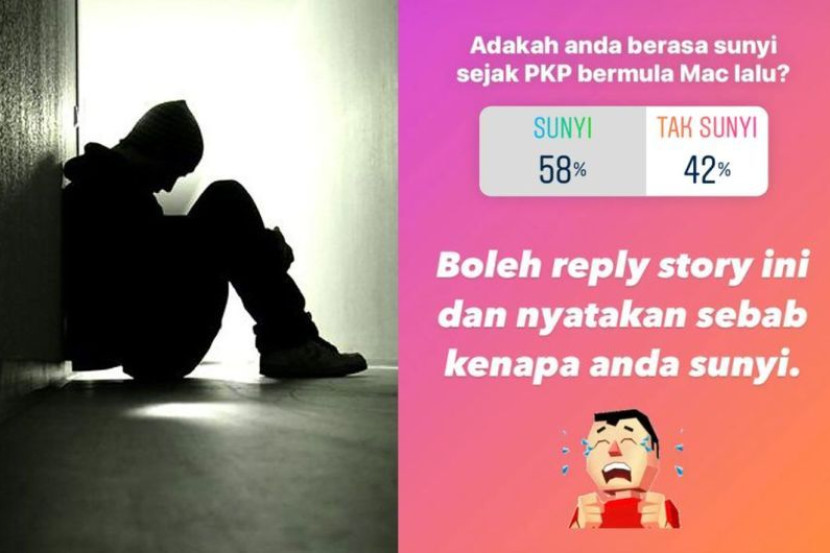 SEJAK kerajaan memperkenalkan Perintah Kawalan Pergerakan (PKP) mulai 8 Mac lalu bagi membendung penularan virus Covid-19, kita perlu duduk di rumah sebagai langkah berjaga-jaga. Meskipun kini negara dalam proses pemulihan daripada wabak itu namun peningkatan kes gelombang ketiga sejak September lalu telah membuatkan ramai daripada kita resah wabak itu tidak dapat dibendung.ARTIKEL BERKAITAN: Ada hubungan positif antara permainan video dengan kesihatan mental tatkala Covid-19, ketahui bagaimana Keputusan kerajaan memperkenalkan kembali Perintah Kawalan Pergerakan Bersyarat (PKPB) di seluruh negara kecuali di Perlis, Pahang dan Kelantan sedikit sebanyak mengundang resah walaupun syarat PKPB tidak terlalu ketat. Pun begitu menerusi undian yang dilakukan mStar di Instagram, 58 peratus mengakui berasa sunyi apabila terpaksa menghabiskan banyak masa di rumah, manakala 42 peratus yang lain berpendapat situasi semasa tidak memberi kesan kepada kesihatan mental mereka. Ramai yang ingin kembali ke sekolah. Golongan paling terkesan adalah pelajar sekolah yang rata-rata memberitahu mereka berasa sunyi kerana tidak banyak perkara dapat dilakukan di rumah meskipun masih dapat belajar secara dalam talian. Ramai berpendapat belajar secara dalam talian masih mempunyai banyak kelemahan termasuk fokus terganggu disebabkan capaian Internet tidak stabil, bunyi bising serta faktor lain seperti berasa tidak semangat dan gangguan lain di rumah. Rata-rata juga berharap sekolah dapat dibuka kembali terutamanya kepada pelajar yang bakal menduduki peperiksaan penting seperti Sijil Pelajaran Malaysia (SPM) dan Sijil Tinggi Pelajaran Malaysia (STPM). "Rasanya dah tiada apa yang boleh dilakukan lagi dirumah. Nak tengok Instagram, semua dah tengok. Sampaikan semua darama Korea sudah khatam! Jadi kebanyakan masa hanya buat kerja sekolah. "Memang rasa bosan dan sunyi. Kalau dapat ke sekolah, boleh jumpa rakan-rakan, guru dan belajar pun lebih bersemangat," komen salah seorang pengikut mStar. Antara punca rasa sunyi adalah disebabkan masalah perhubungan. Sementara itu, ada pula memberitahu perasaan sunyi sepanjang Covid-19 itu melanda disebabkan terpaksa berjauhan dengan insan tersayang yang tinggal berasingan selain tidak dapat merentas negeri. Malah ada juga menyifatkan PKP dan penyebaran wabak ini telah memberi kesan kepada rumah tangga mereka. "Sunyi sangat... Sejak PKP saya dan isteri berjauhan dan hubungan kami pula tidak berapa baik ketika ini. Masing-masing mengambil masa untuk tenangkan diri. Doakan kami agar dapat mengharungi cabaran dan dugaan ini," kata salah seorang pengikut mStar yang lain. Tidak hanya yang berjauhan, pasangan suami-isteri yang 'terperangkap' di dalam rumah setiap hari juga mula berhadapan dengan masalah seperti tiada komunikasi, bertengkar serta lebih banyak buat hal masing-masing. Selain itu, ada pula terpaksa berhadapan dengan situasi ditinggalkan kekasih hanya gara-gara sudah lama tidak bertemu dan menjadikan ia alasan untuk berpisah. "Memang rasa sunyi dan tertekan! Sudahlah ditinggalkan, nak keluar rumah bersemuka pun tak boleh. Jadi mahu tak mahu, terpaksa terima dan reda sahaja. Pasti ada hikmahnya," kata salah seorang pengikut mStar. Dalam kaji selidik sama, selain pelajar berasa sunyi kerana tidak dapat ke sekolah dan pasangan mengalami masalah rumah tangga, penyebab rasa sunyi lain yang dikongsi pengikut mStar adalah disebabkan kehilangan pekerjaan. Biarpun reda dengan keputusan majikan namun ia sedikit sebanyak menggangu kesihatan mental mereka kerana sukar mendapat pekerjaan baharu ditambah peningkatan kes Covid-19 dan PKPB yang sedang dilaksanakan kerajaan. Nak macam-macam info? Join grup Telegram mStar!