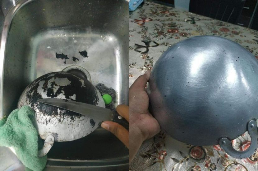 KUALI yang hitam dan berkarat bukanlah satu keadaan yang pelik. Sebaliknya, ia menjadi bukti bahawa kuali itu banyak berjasa kepada 'perut' tuannya. Di laman Facebook, seorang wanita dikenali sebagai Amy Rosina berkongsi petua mudah untuk memberi nafas baharu kepada kuali lama di dapurnya. Dalam nada berseloroh, wanita itu berkata dia baru mengetahui tentang teknik berkenaan selepas 10 tahun mendirikan rumah tangga. "Alhamdulillah... Ya Allah syukur setelah 10 tahun jadi isteri baru jumpa cara terbaik cuci kerak-kerak kuali periuk yang seusia perkahwinan. Kerak hitam mudah untuk ditanggalkan selepas kuali dilumur dengan kapur dan direndam di dalam air. "Tak perlu susah payah sental bagai nak putus urat lengan sampai luka jari-jari. Tak sampai 30 minit kerak 10 tahun hilang. "Jom saya kongsi untuk suri semua, sama-sama kita bahagia. Hangpa cuma perlu kapur makan. Kapur yang makan dengan sirih tu," ujarnya. ARTIKEL BERKAITAN: Misi pemuda mahu cuci kerak hitam pada kuali berjaya, cuma guna 3 bahan terus bersinar macam baharu! Menerusi perkongsian itu, Amy dilihat menyapu bahagian 'bontot' kuali yang hitam dengan kapur makan. Kuali yang dilumur kapur itu kemudiannya direndam di dalam air. Semakin lama direndam, semakin mudah untuk kita tanggalkan kotoran pada kuali. Selepas direndam, anda boleh mula mengikis kerak hitam yang mula lembut dengan menggunakan pisau. Jadilah sebahagian daripada geng mStar! Follow kami di Telegram, Twitter, TikTok, Facebook, Instagram dan YouTube