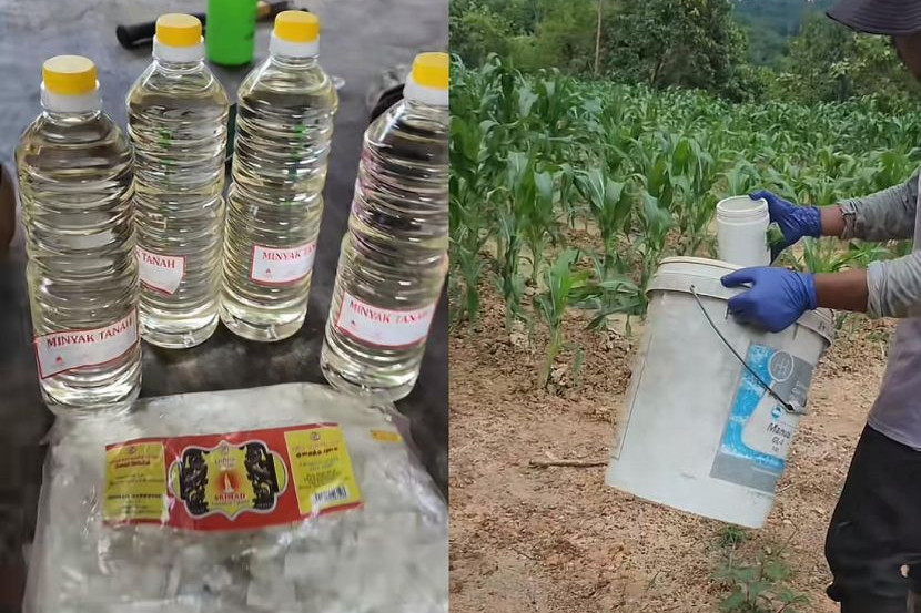 9) Siram bancuhan minyak tanah dan kapur barus di sekeliling kebun