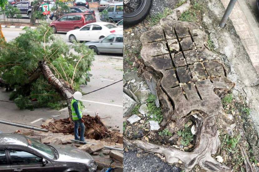 "Saya cuma ingin berkongsi salah satu kaedah mematikan pokok besar yang saya dapat daripada kontraktor. Ini gambar di kawasan rumah saya. Setahun yang lepas ada kontraktor datang tebang beberapa pokok besar di kawasan perumahan saya.