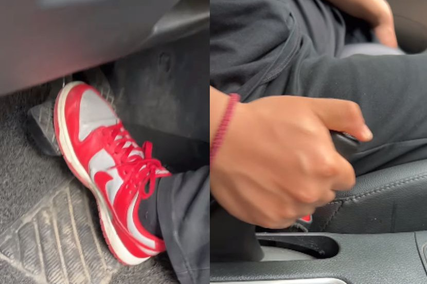 Lakukan gerakan tarik dan lepaskan brek tangan berulang kali sehingga kenderaan anda bergerak perlahan.