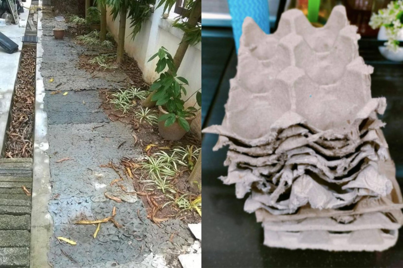 "Bagus petua ni! Kotak telur tu boleh bertahan sampai setahun, tak reput, selamat tinggal rumput. Lagi satu air hujan senang meresap sebab sifat kotak telur tu seakan kertas, tidaklah bertakung depan rumah kita.