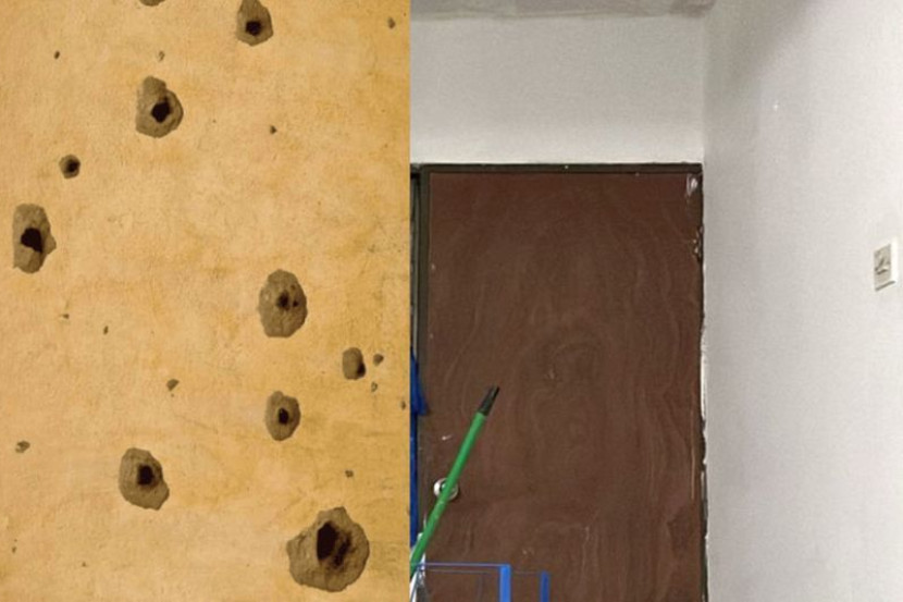 Maka berlakulah banyak tebukan pada dinding sehingga ada yang terlihat seperti kesan tembakan rawak.
