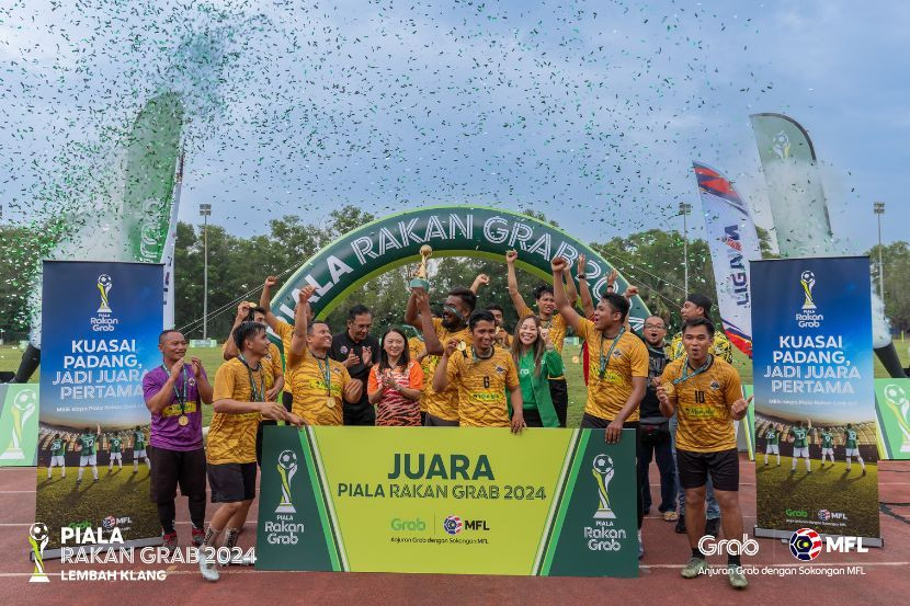 Kehebatan mereka terbukti dalam kejohanan bola sepak komuniti anjuran Grab Malaysia untuk menyemarakkan semangat keakraban dan perpaduan dalam kalangan rakan pemandu dan penghantar.