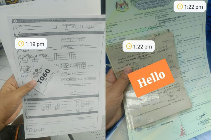 "Namun setibanya di sana, mereka kata sijil kelahiran saya harus diperbaharui terlebih dahulu kerana sudah lama dan tulisan tangan. Saya diminta ke Jabatan Pendaftaran Negara (JPN) terus untuk perbaharui sijil lahir.