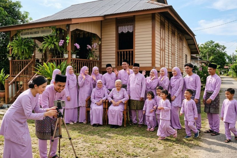 Mengabadikan foto kenangan bersama keluarga adalah perkara 'wajib' setiap kali tibanya Syawal. -Gambar hiasan AI