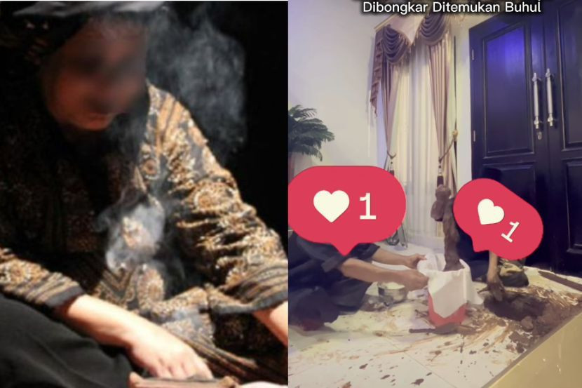 Berdasarkan video tersebut, perawat Islam mengeluarkan buhul dari lantai rumah keluarga berkenaan, dalam kejadian dipercayai di Indonesia.