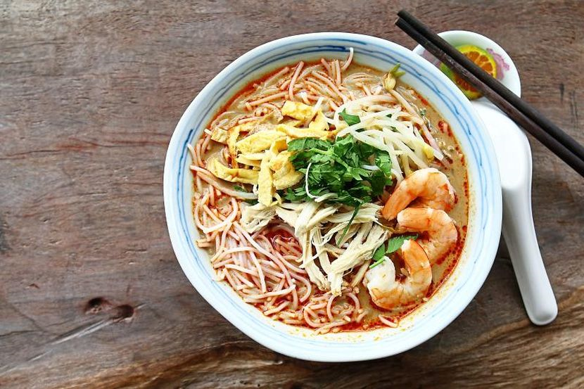 LAKSA Sarawak juadah yang terkenal berasal dari Bumi Kenyalang ini menjadi kegemaran ramai lebih-lebih lagi jika dimakan bersama sambal udang kering... Nang nyaman Laksa Sarawak ya! Bahan-bahan pes laksa sarawak : anggaran 200 gram 8 biji bawang merah* 4 ulas bawang putih* 10-12 tangkai cili kering* 1 inci lengkuas* 3 biji buah keras* 2-3 batang serai* 1 inci belacan bakar* 1 sudu kecil ketumbar 1 sudu kecil jintan manis 1 sudu kecil jintan putih 1/4 cawan kacang tanah (digoreng) 1/4 cawan bijan (digoreng tanpa minyak) Sedikit garam Sedikit minyak untuk menumis Cara-cara: Kisar lumat bahan-bahan yang bertanda* Bahan-bahan seperti jintan manis/putih, ketumbar, kacang tanah dan bijan dikisar/ditumbuk halus terlebih dahulu sebelum disatukan dengan bahan-bahan bertanda* Panaskan minyak. Tumis bahan-bahan tadi sehingga warna bertukar keperangan. Tambah garam dan sedikit gula. Kacau sehingga rata. Simpan di dalam bekas yang bertutup dan masukkan ke dalam peti sejuk sekiranya ingin menyimpan lama. Bahan-bahan untuk laksa sarawak: anggaran 6 orang makan 200 gram pes laksa sarawak Isi ayam secukupnya (direbus dan dicarik halus) 1/2 kilogram udang basah 1 bungkus mihun (direndam dan dicelur) 4 biji telur (didadarkan dan dihiris halus) 2 batang serai (diketuk) 200-250 ml santan pekat Garam dan gula secukup rasa Taugeh (dicelur) Sedikit daun ketumbar (diracik) Limau kasturi secukupnya (dibelah dua) Kek ikan (dihiris nipis) Cara-cara: Sediakan 2 liter air dalam periuk dan jerangkan. Kemudian masukkan udang yang sudah dibersihkan bersama serai dan rebus hingga udang masak. Seterusnya toskan udang dan pastikan air rebusan tadi jangan dibuang sebaliknya masukkan pes laksa dan kacau menggunakan api perlahan (boleh tambah air jika perlu). Masukkan santan dan perasakan dengan garam serta sedikit gula. Masukkan mihun ke dalam mangkuk, letakkan bahan-bahan seperti taugeh, telur, daun ketumbar, isi ayam dan telur. Tuangkan kuahnya dan perahkan dengan limau kasturi. Hidangkan panas-panas. Untuk lebih sedap, masukkan sedikit sambal udang kering. Resipi Sambal Udang Kering Bahan-bahan: 6 biji bawang merah (dikisar) 2 ulas bawang putih (dikisar) sedikit belacan bakar (dikisar) segenggam udang kering (dikisar/ditumbuk halus) 4-5 sudu makan cili kisar/cili giling secukupnya sedikit air asam jawa garam dan gula Cara-cara : Tumiskan bahan-bahan kisar dan cili kisar tadi hingga pecah minyak. Perasakan dengan garam dan gula dan masukkan air asam jawa. Kacau hingga pekat. Kredit: Blog Dayang Jack