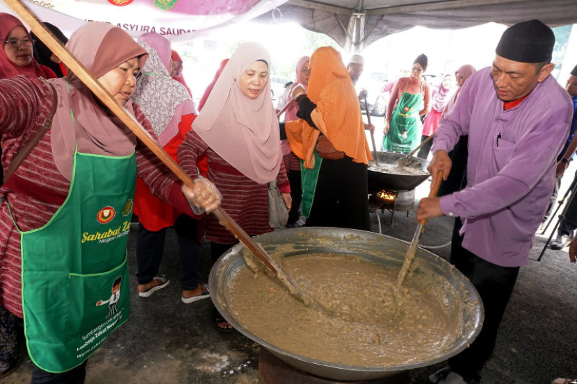 MASUK sahaja bulan Muharam, pastinya masyarakat Islam di negara kita akan sibuk membuat hidangan yang dikenali sebagai bubur asyura. Bubur asyura akan disediakan pada 10 Muharam, namun ia juga boleh disediakan pada hari lain. Secara asasnya bahan bubur asyura adalah beras, kacang, sayur-sayuran dan sebagainya. Bagaimanapun, bubur asyura mempunyai pelbagai versi mengikut negeri. Ada yang menggunakan tepung, kekacang dan buah-buahan, jadi terpulang kepada anda mahu mencuba versi dari negeri mana. Resepi bubur Asyura yang menggunakan beras. Resipi berikut merupakan daripada buku masakan Marina Mustafa, Cooking Under Pressure. Bahan-bahan 1 biji bawang merah (dikisar) 3 ulas bawang putih (dikisar) 1/2 inci halia (dikisar) 1/2 cawan beras (basuh dan bilas) 250gram daging lembu (dihiris) Sedikit kacang panggang, kacang merah, barley, jagung, kacang kuda (direndam), kacang dhal (direndam) Setengah batang karot, ubi kentang (dipotong dadu) 2 cawan air 1 sudu kerisik Buah pelaga, kayu manis, bunga lawang 1 sudu serbuk kari Cara-caranya Tanak nasi bersama daging lembu dengan air dalam periuk besar sehinggalah nasi mulai mendidih. Masukkan semua kacang, biji, kentang , karot ke dalam periuk dan biarkan terus mendidih. Dalam kuali yang berasingan, panaskan 3 sudu minyak. Tumis kayu manis, ulas, buah pelaga dan bunga lawang. Masukkan bawang, halia dan bawang putih ke dalam kuali. Kemudian tambah serbuk kari. Kacau hingga sedikit kering. Tuangkan semua bahan yang ditumis ke dalam periuk dan kacau. Masukkan kerisik dan santan. Perasakan dengan garam dan lada hitam. Sedia dihidang. -KUALI